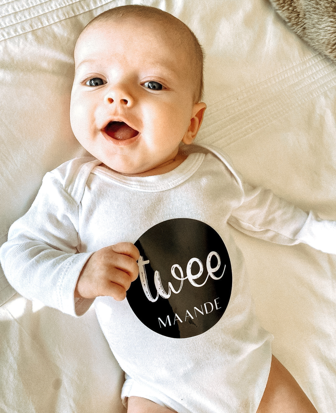 Easy to stick onto a little onesie or to a board. The milestone stickers are available from Hello my name is ______ ; One week ; Two Weeks up and then all the way up to 1 year old.